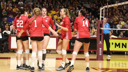 • At 19-19 in the third set Minnesota scored three straight to go up 22-19 and won the third set, 25-22.