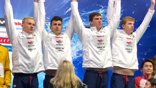 Swimming for Team USA in the men's 4x200m freestyle relay, current Hoosier Zach Apple and postgrad Blake Pieroni won gold, helping the Americans win with a time of 7:04.36. Swimming second, Pieroni split a 1:47.63, while Apple posted a 1:46.20 swimming third.