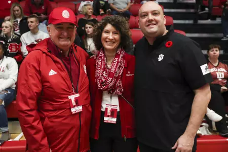McRobbie and First Lady Laurie Burns McRobbie visited with IU head coach Steve Aird before the match and supported the Hoosiers throughout the match. They also got a chance to visit with Indiana volleyball All-American Ashley Benson.