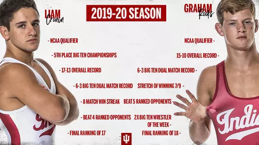"I am very proud of the season Liam and Graham had this year! "Both wrestlers started the year unranked and worked their way to a top 20 ranking knocking off multiple ranked individuals including top 10 opponents. They both provided electrifying matches at Wilkinson Hall that embodied the attitude and effort we want displayed from Indiana University wrestlers.