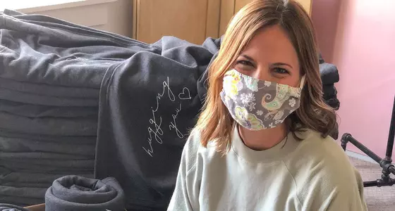 I can't sew, so helping create PPE for people wasn't an option. But I can screen print. In fact, my screen printing studio is located safely here in our home in Fishers. For my family, hugs are essential. And I missed them. Touch starvation is a real thing. It can not only have negative effects on your mental and emotional health, but physical health, too. So I decided to create a tangible way for loved ones to connect and share love and support even from a distance. I created a hug in the form of the softest blanket with the words "Hugging You" and an icon of our universal knotted hearts imprinted on each. Proceeds from blankets sold on my website shoplivedreams.com are then used to create and donate hugs to healthcare workers (and their families) at the front lines of the COVID-19 fight. I just needed to believe a little extra boost from a random act of love and appreciation could do some good. And it has.