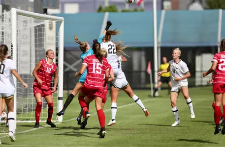 • In the 43rd minute IU goalkeeper Jamie Gerstenberg dove to her right to block a significant Notre Dame chance. In the first extra time Gerstenberg tipped a ball over the upper crossbar to preserve the 0-0 score.